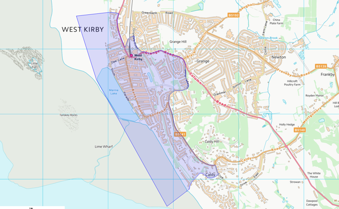 The dispersal zone covers the area bounded by the map above, and includes Croft Drive, Croft Drive East, Caldy Road, Village Road, Hilbre View, Grange Road, Orrysdale Road, Bridge Road, Meols Drive, Pinfold Lane, West Kirby Beach, Caldy Beach.