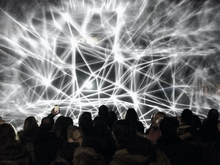- Constellations Presents by Studio Joanie Lemercier will see a stunning 16-minute audio visual installation projected onto a wall of water particles.