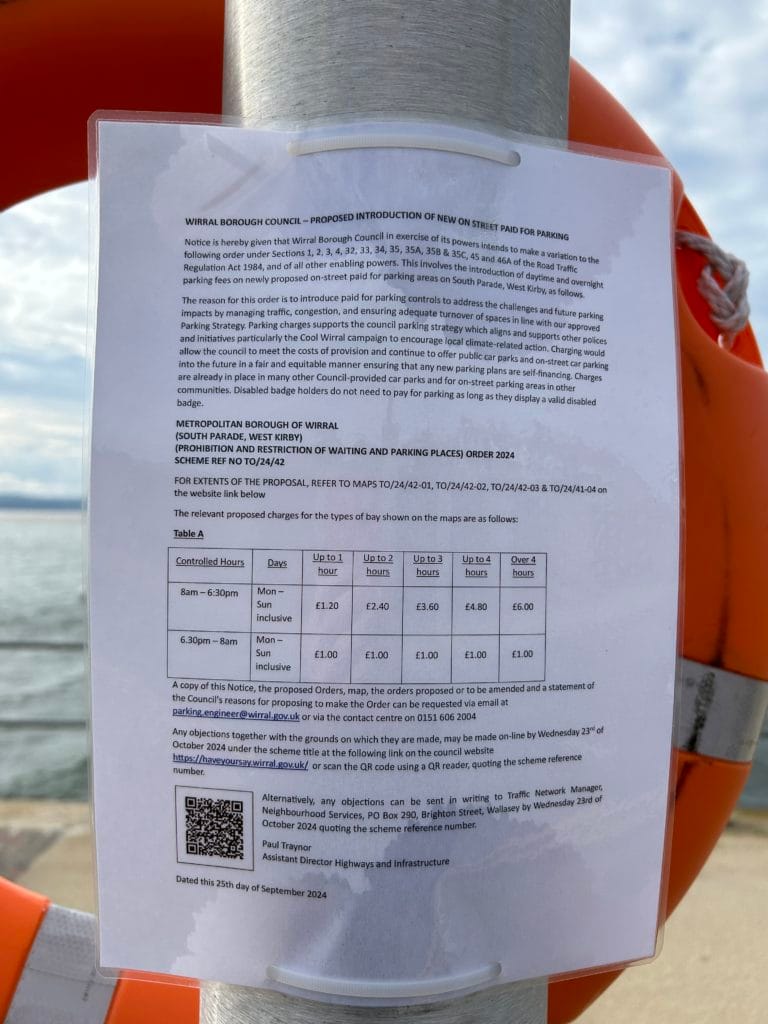 The proposal would mean drivers having to pay £1.20 an hour to park on the fronts in West Kirby and Hoylake, up to a maximum of £6. There would also be a fee of £1 to park overnight, from 6.30pm to 8am.