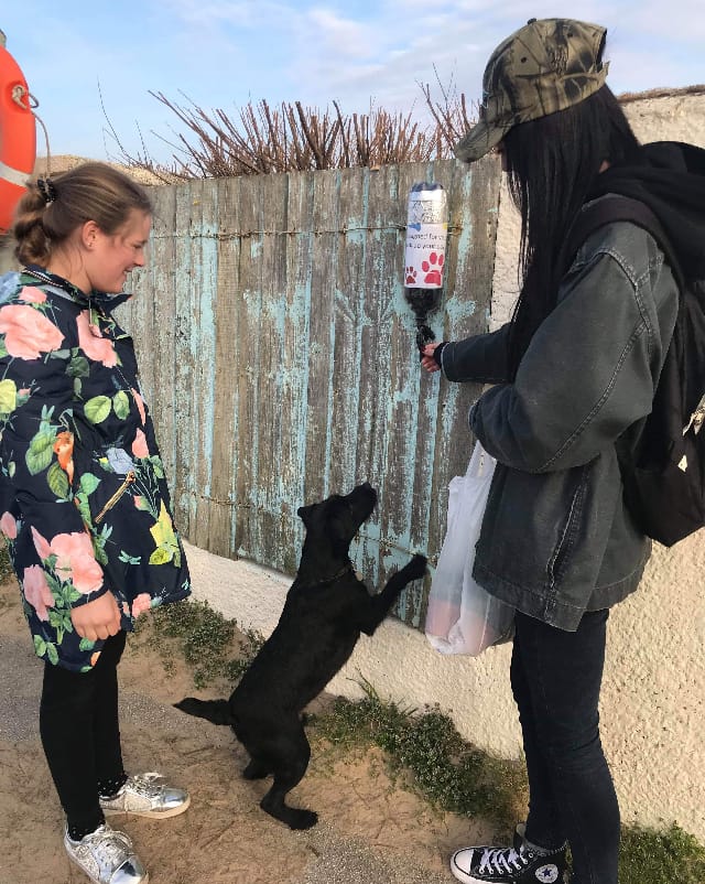 “So I decided I would leave doggy bags out, but needed an idea to put them in something that would be protected from the wind and rain. Then I thought of our recycling bin and our plastic bottles as this helps the environment in more ways than one.
