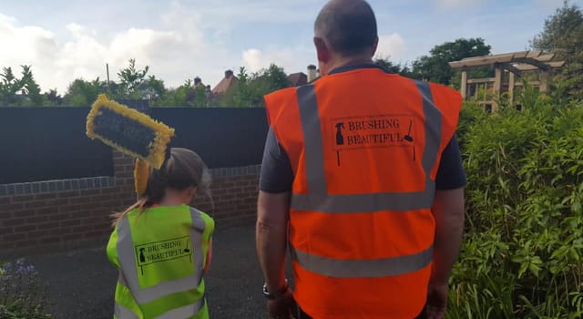 Chrisell has even had special hi-vis jackets made, and is using brushes with extra-long handles to reach signs that are high up.