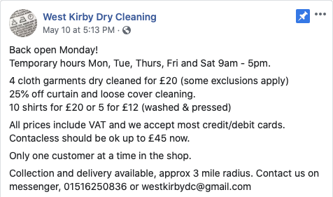 So to help them out, and support our local economy, we are compiling a one-stop hub to help people in West Kirby know where they can shop.