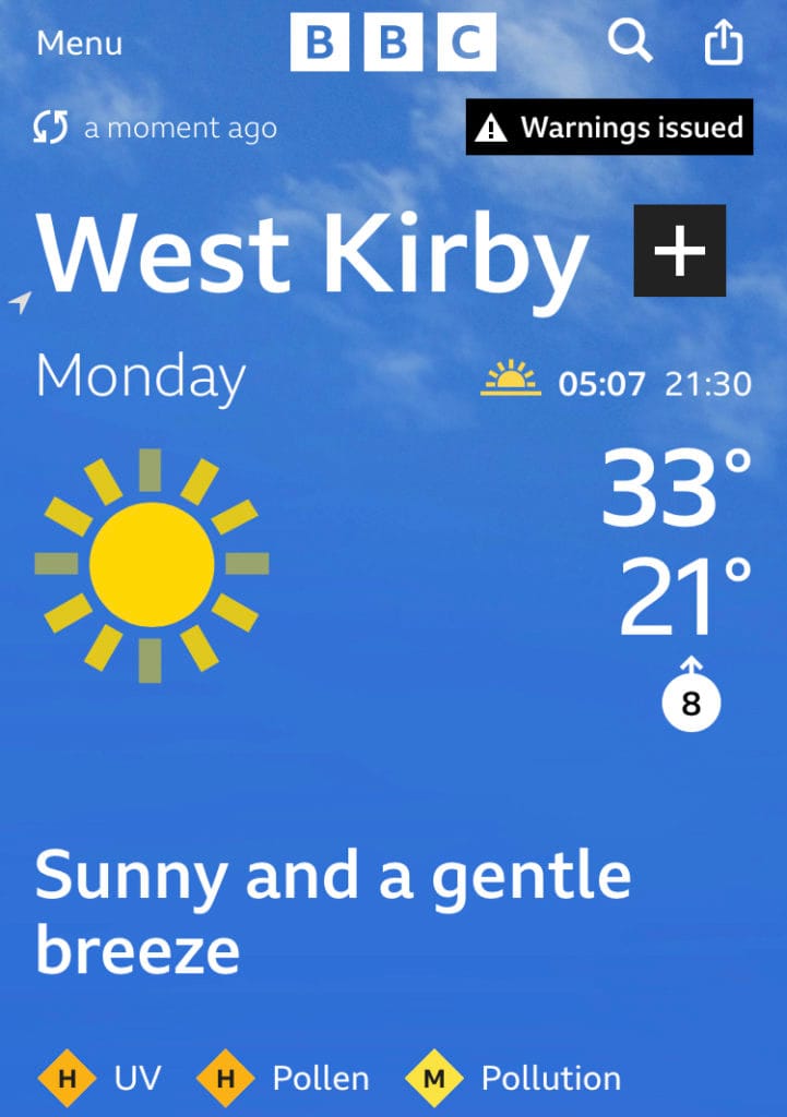 Temperatures are expected to reach 40 celcius in some parts of the country, prompting the Met Office to issue an extreme heat warning, although Wirral is currently subject to an amber rather than a red warning.