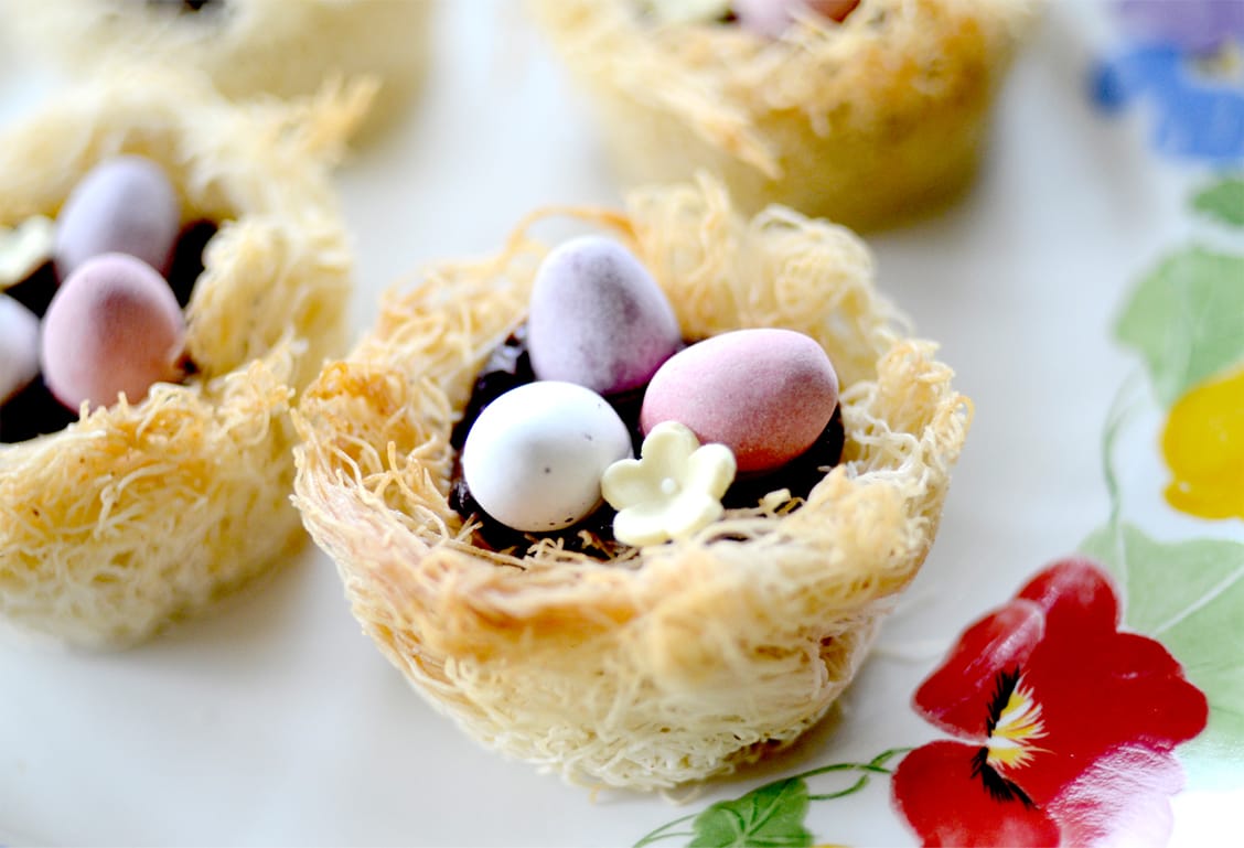 Now use the pastry to form nests in a muffin tray. Make sure you press them firmly against the sides and leave a dip in the centre for your eggs.