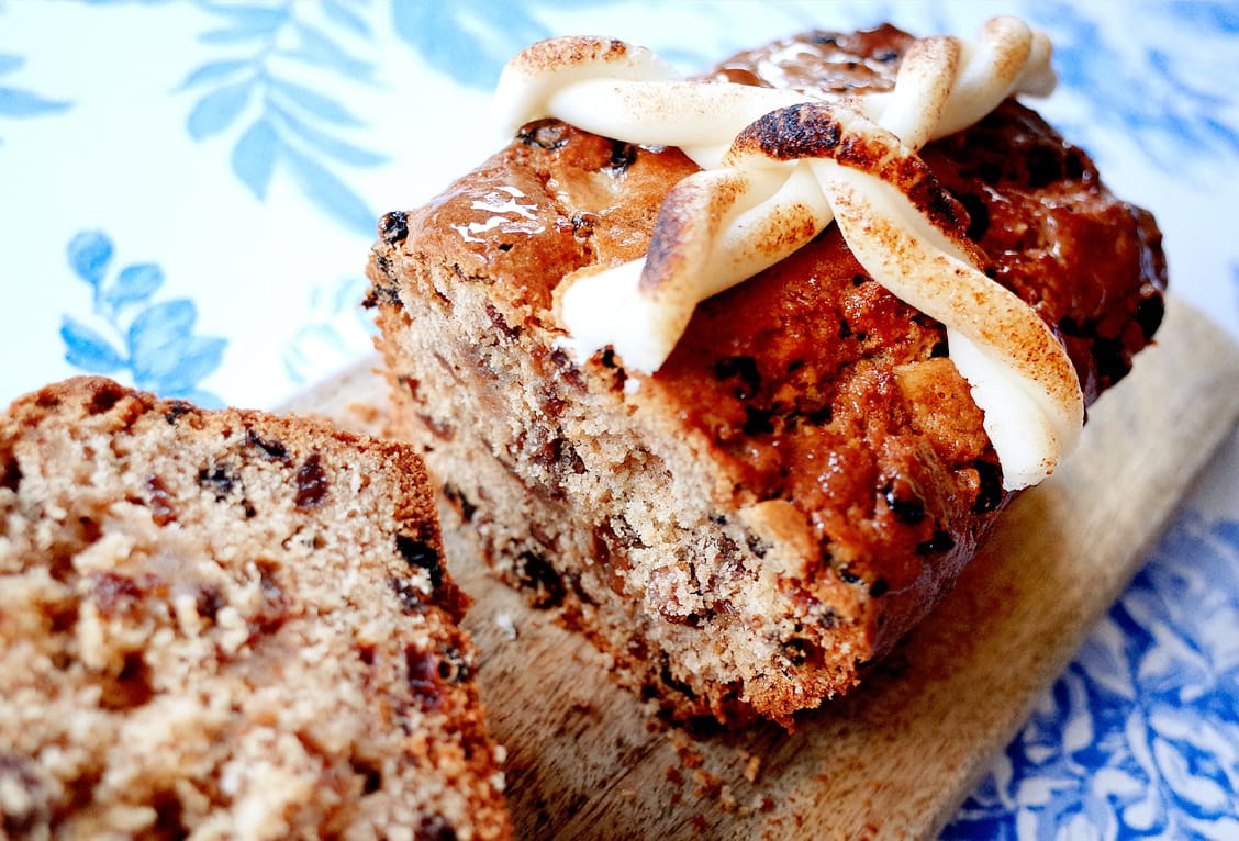 Bake for 50-60 minutes until cooked through. Heat the honey slightly and brush the top of the cake to give it a lovely sticky glaze. Use the last bit of marzipan to make a cross to decorate the top of your cake.