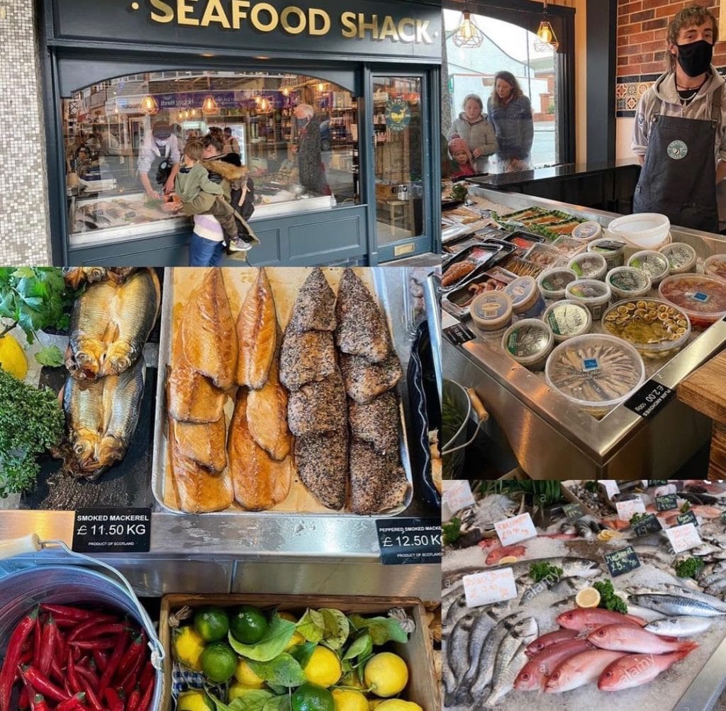 The shop stocks 90% UK-sourced fish and shellfish, as well as locally-sourced fish when it is in season. It also houses a deli, stocked with seafood-related produce, vegetables, cheese, olives and sauces.