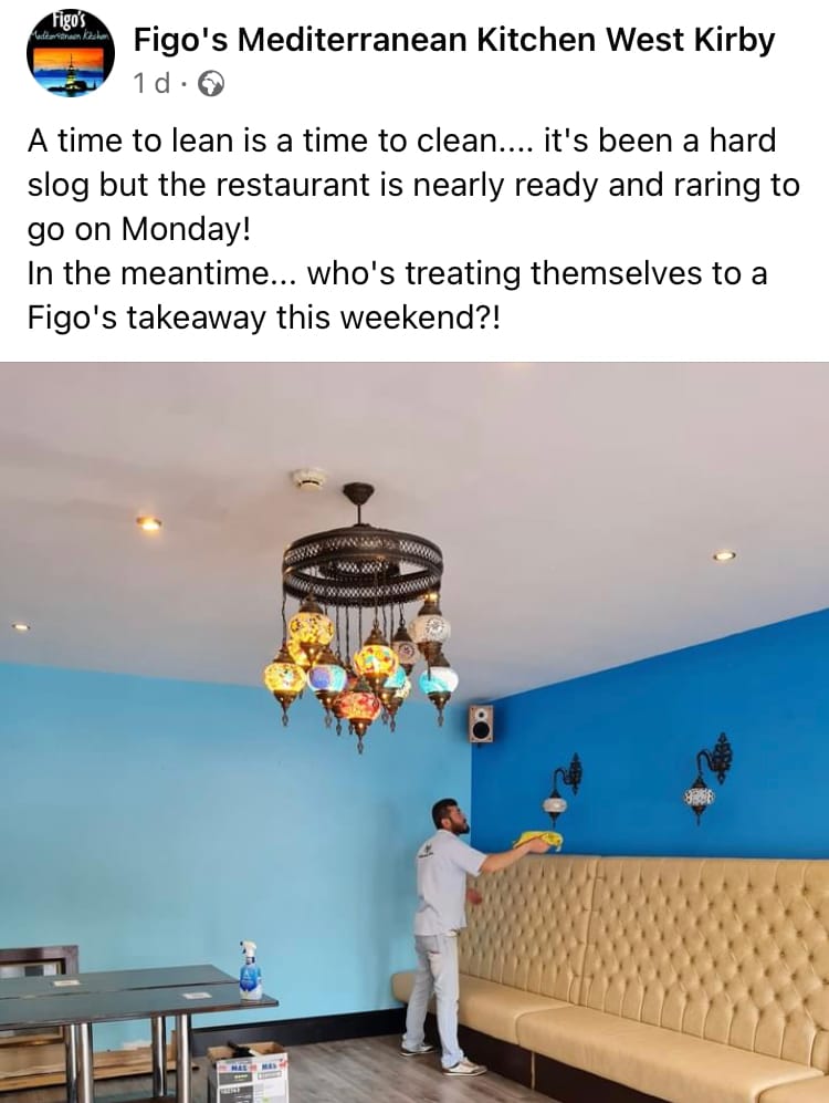 Figo's said: "A time to lean is a time to clean...it's been a hard slog but the restaurant is nearly ready and raring to go on Monday."