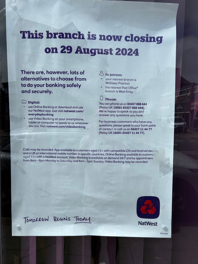 Natwest on Banks Road was due to close in early July, but will now remain open until 29 August.