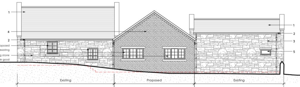"The design and materials are in-keeping with the local vernacular and proposed to be of a heritage blend brick and new stone cills to match existing."