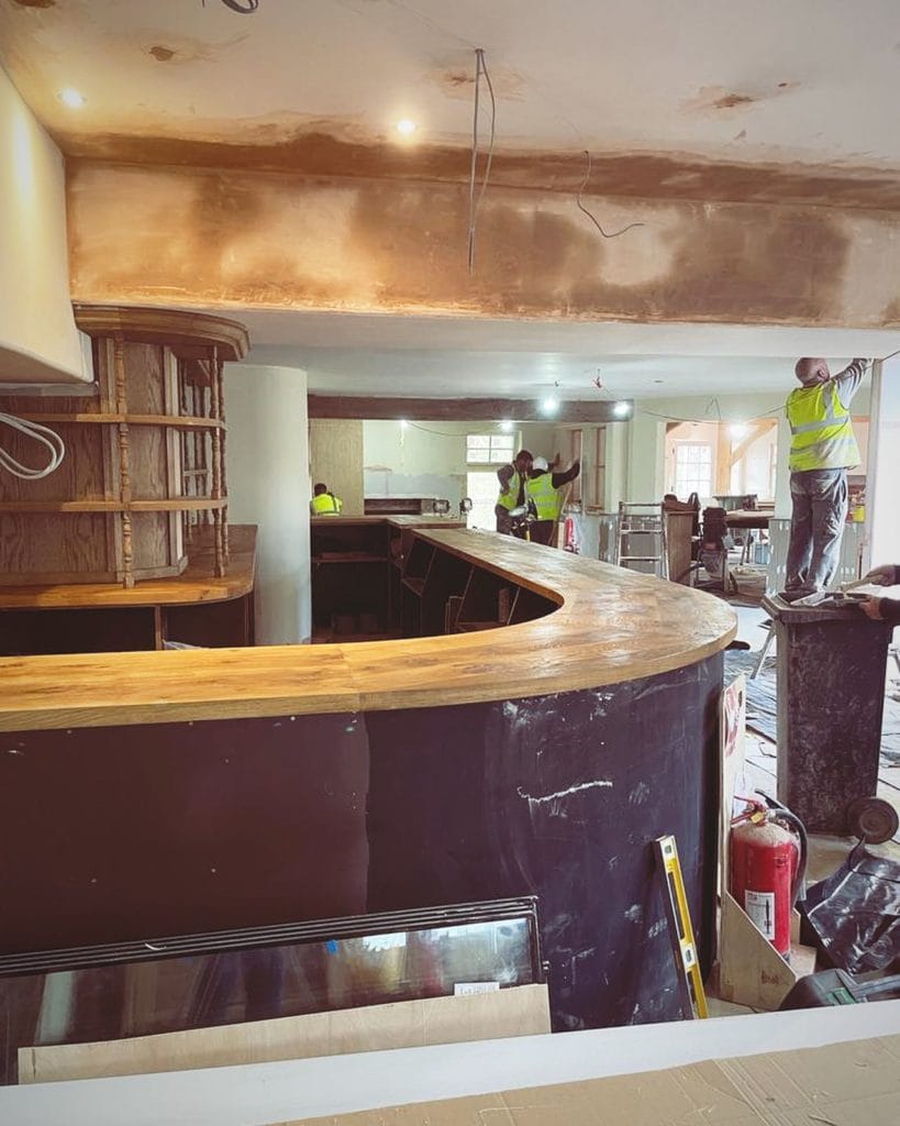Photographs on the Ring O'Bells Facebook page show work taking place installing the bar and kitchen.