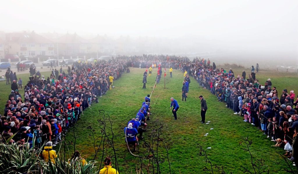 Watched by hundreds of spectators at midday on Boxing Day, the RNLI were victorious in foggy conditions on the front, after two pulls, and raised more than £1,600 for the lifesaving charity.