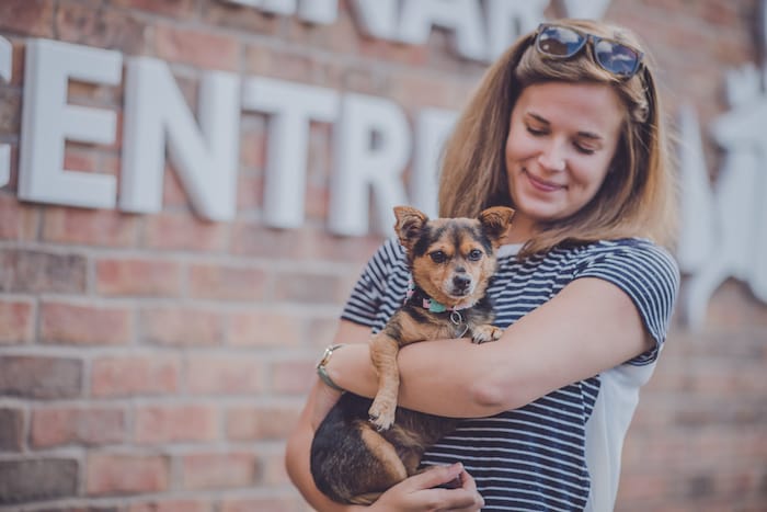 Fast forward four years and now the pint-sized pooch is thriving with her new family which now includes Rachel’s baby boy, Eli.