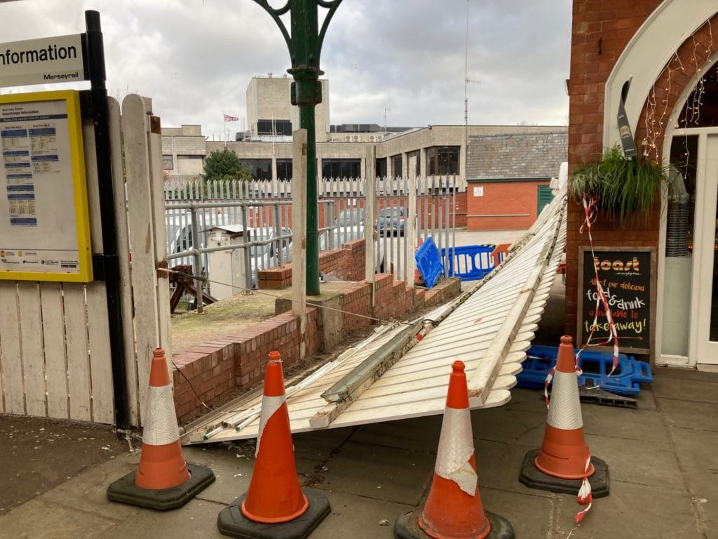 Mersey Fire and Rescue Service is urging people to avoid unnecessary travel and to slow down on the roads until the winds drop this evening.